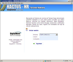 1.Para accesar al módulo del Cajero, ingrese al explorador de internet y digite la siguiente dirección : www.tampacargo.com.co